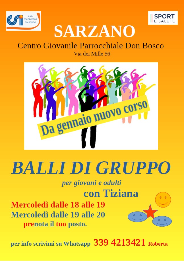 Da gennaio inizia il nuovo corso di balli di gruppo rivolto a giovani e adulti!